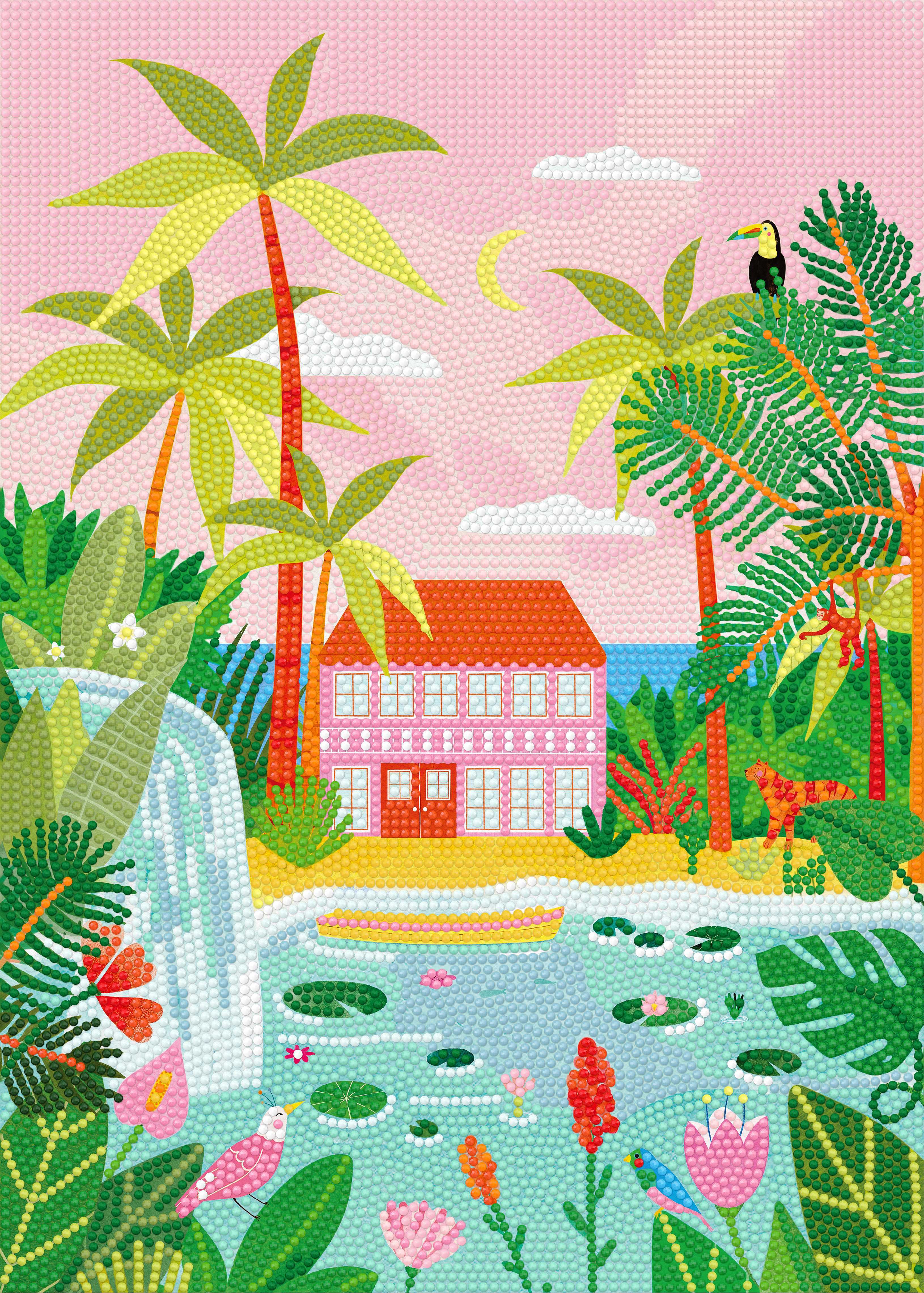 Entrez dans un rêve tropical ! 🏡 Le coffret Dream Home vous transporte dans une maison colorée entourée de palmiers et d’animaux exotiques. Une création paisible et vibrante, à réaliser diamant après diamant, pour un moment d’évasion et de douceur. 🌴